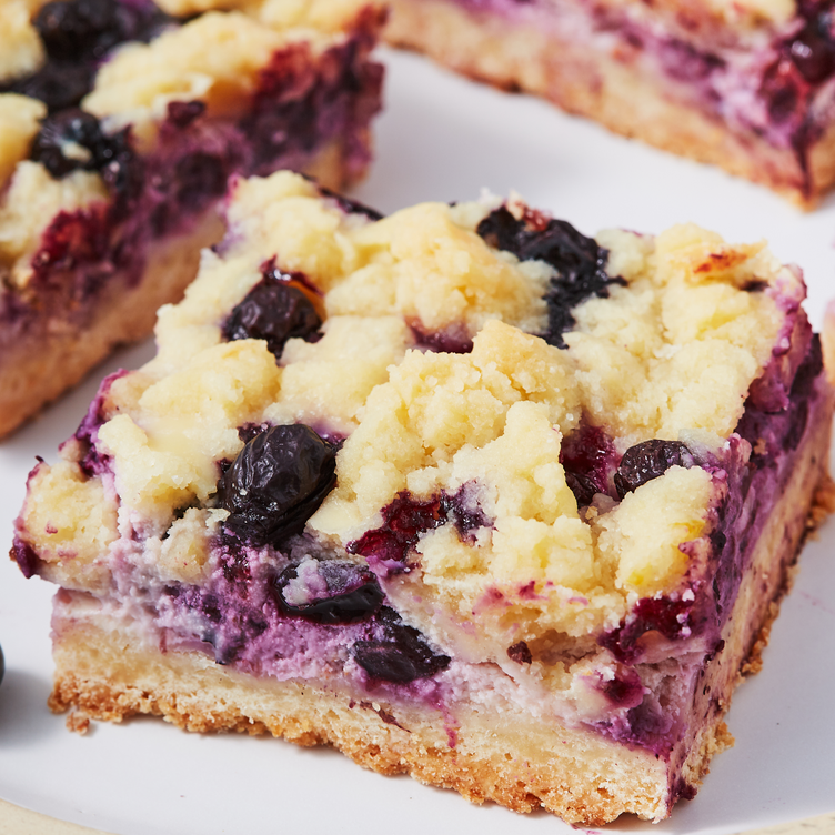 Blueberry Lemon Cheesecake: Homemade crust with lemon zest, fresh blueberry cheesecake, topped with cinnamon streusel topping.