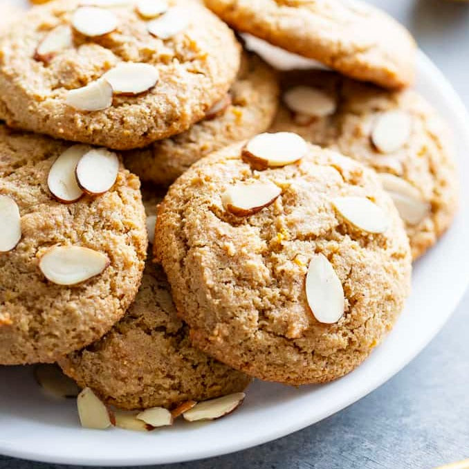 Norwegian Almond-Lemon Cookies: made with unblanched almonds and fresh lemon juice. Topped with slices of lemon and dark chocolate drizzle.