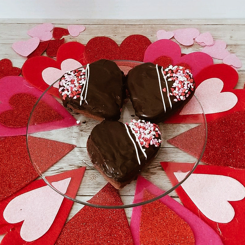 These melt-in-your-mouth heart shape cookies are lovely for celebration. The cookies have three layers: shortbread cookie base, a layer of Oreo cookie truffle covered in chocolate ganache (a favorite!), and decorated with confetti sprinkles. Individually wrapped for a small fee as per request.